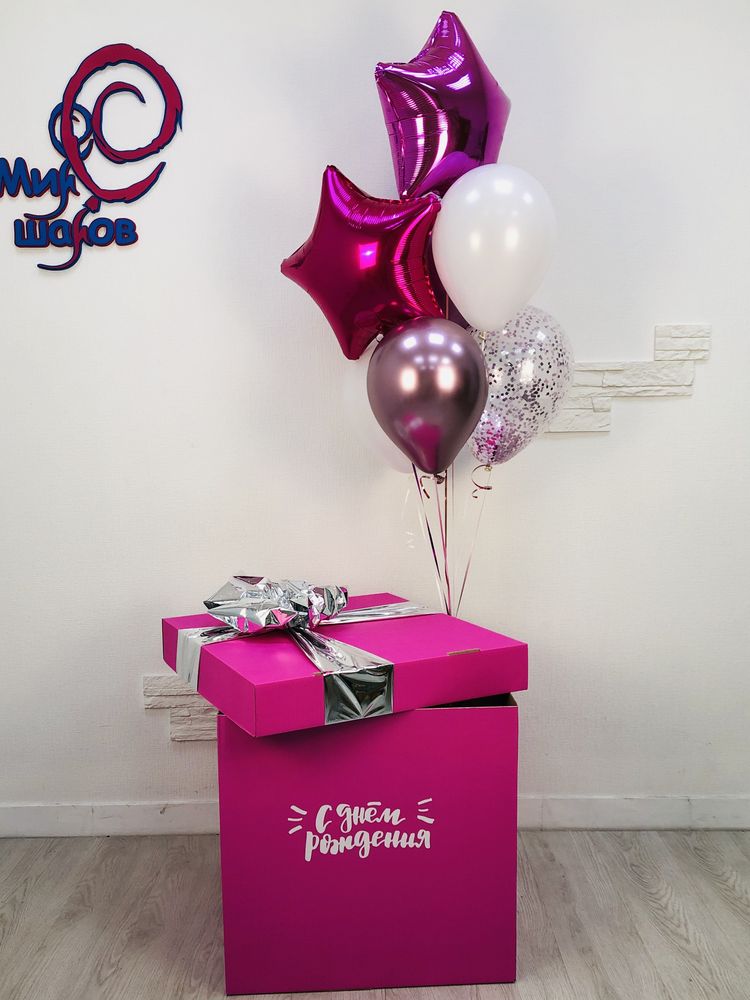 Гелиевые шарики будут радовать Вас, минимум двое суток. В домашних условиях могут пролетать до 3-х недель. Цвет коробки белый. Цвет воздушных шаров может быть разный, уточняйте у менеджера.