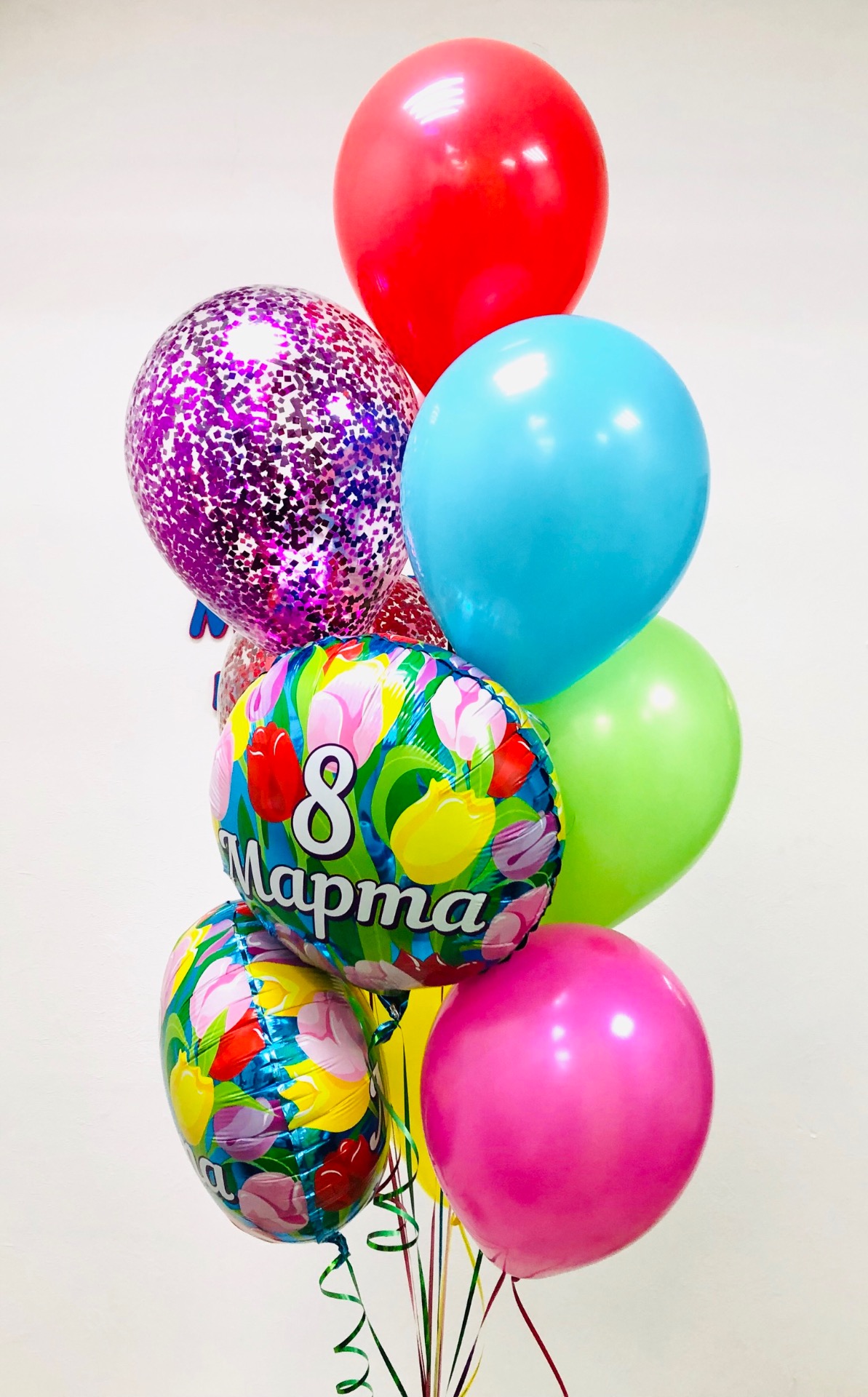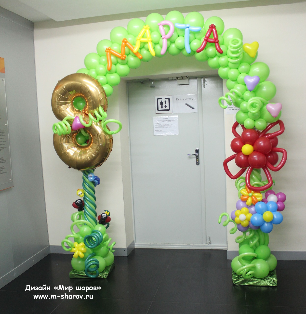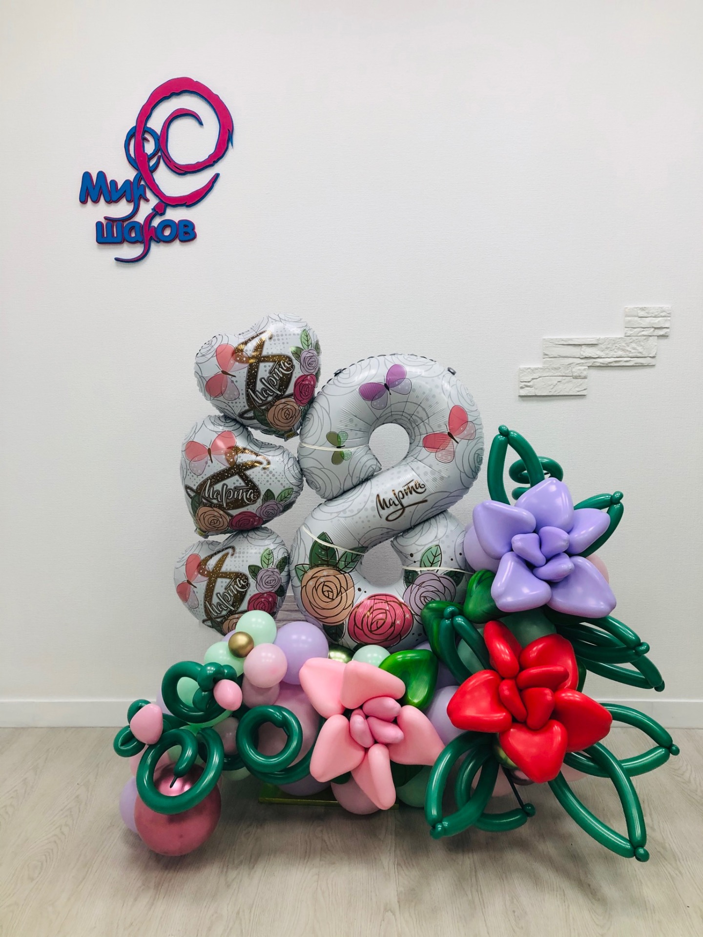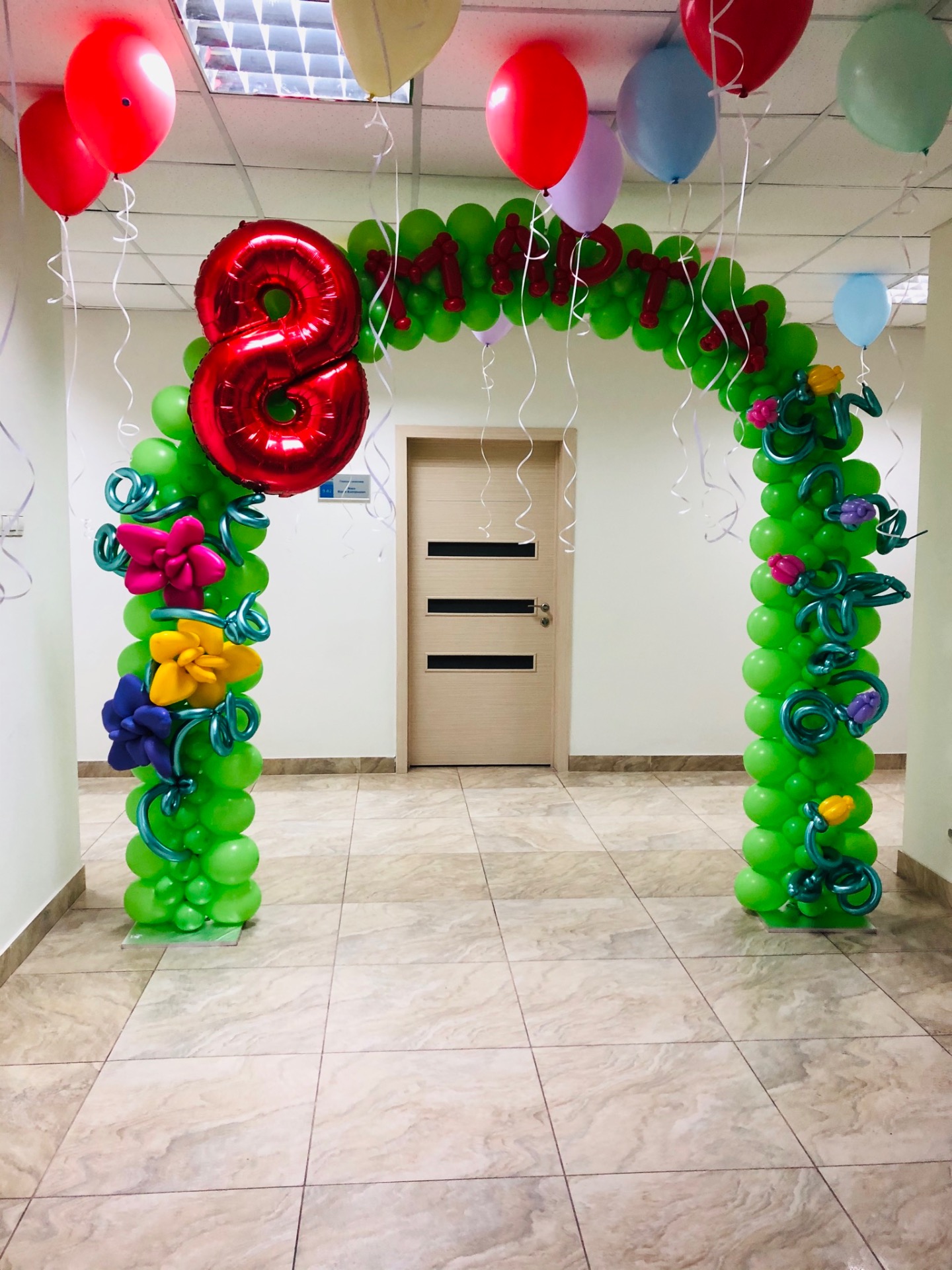 Подарите вашим женщинам оформление из воздушных шаров на 8 марта, красиво оформите место проведения корпоративного мероприятия и подарите букеты из разноцветных шариков.