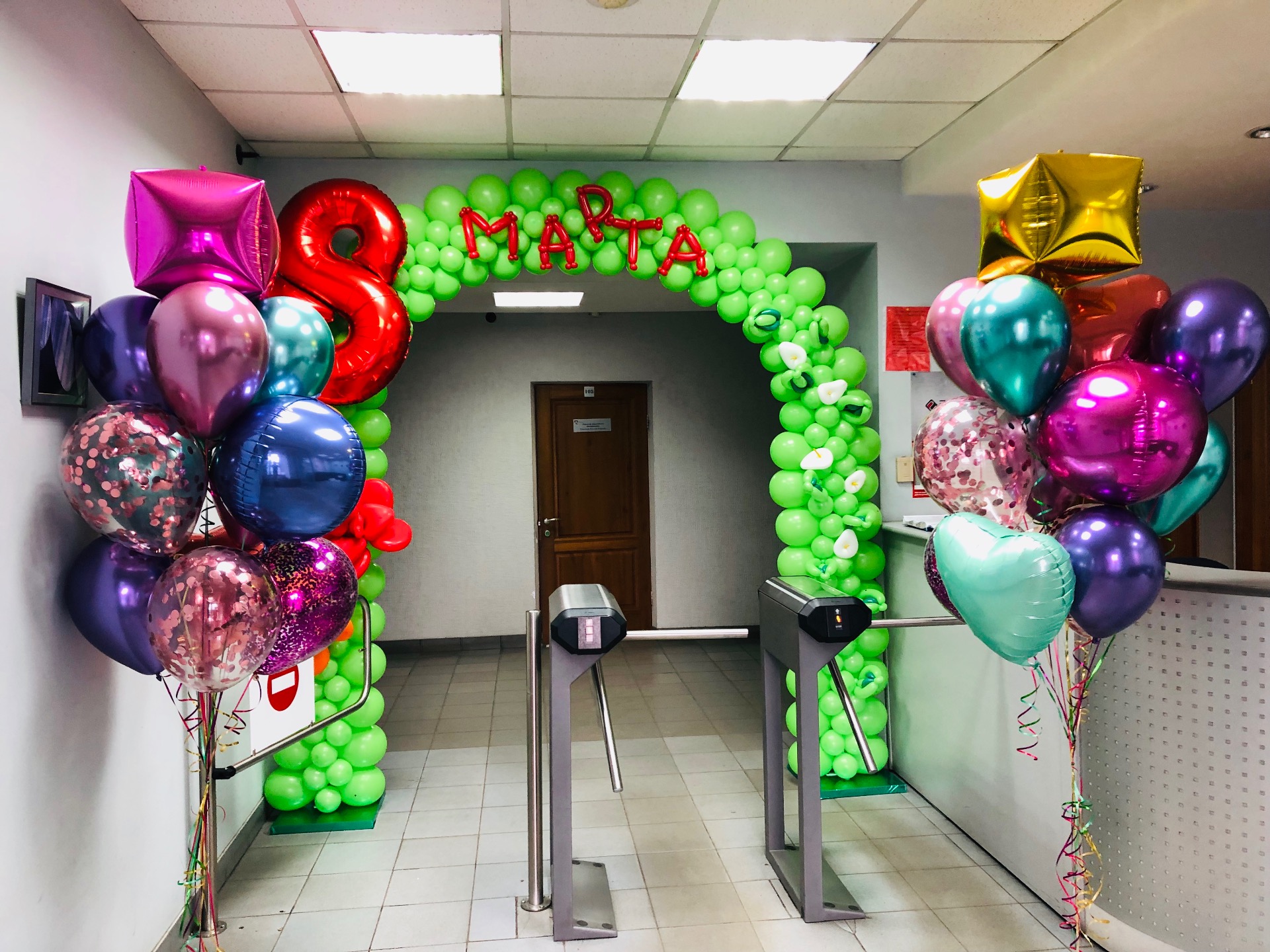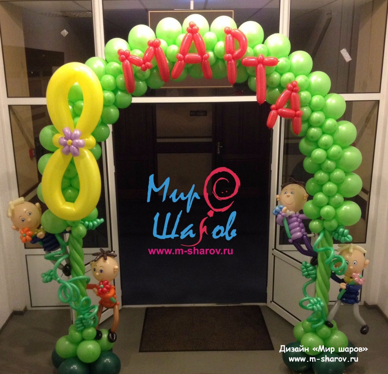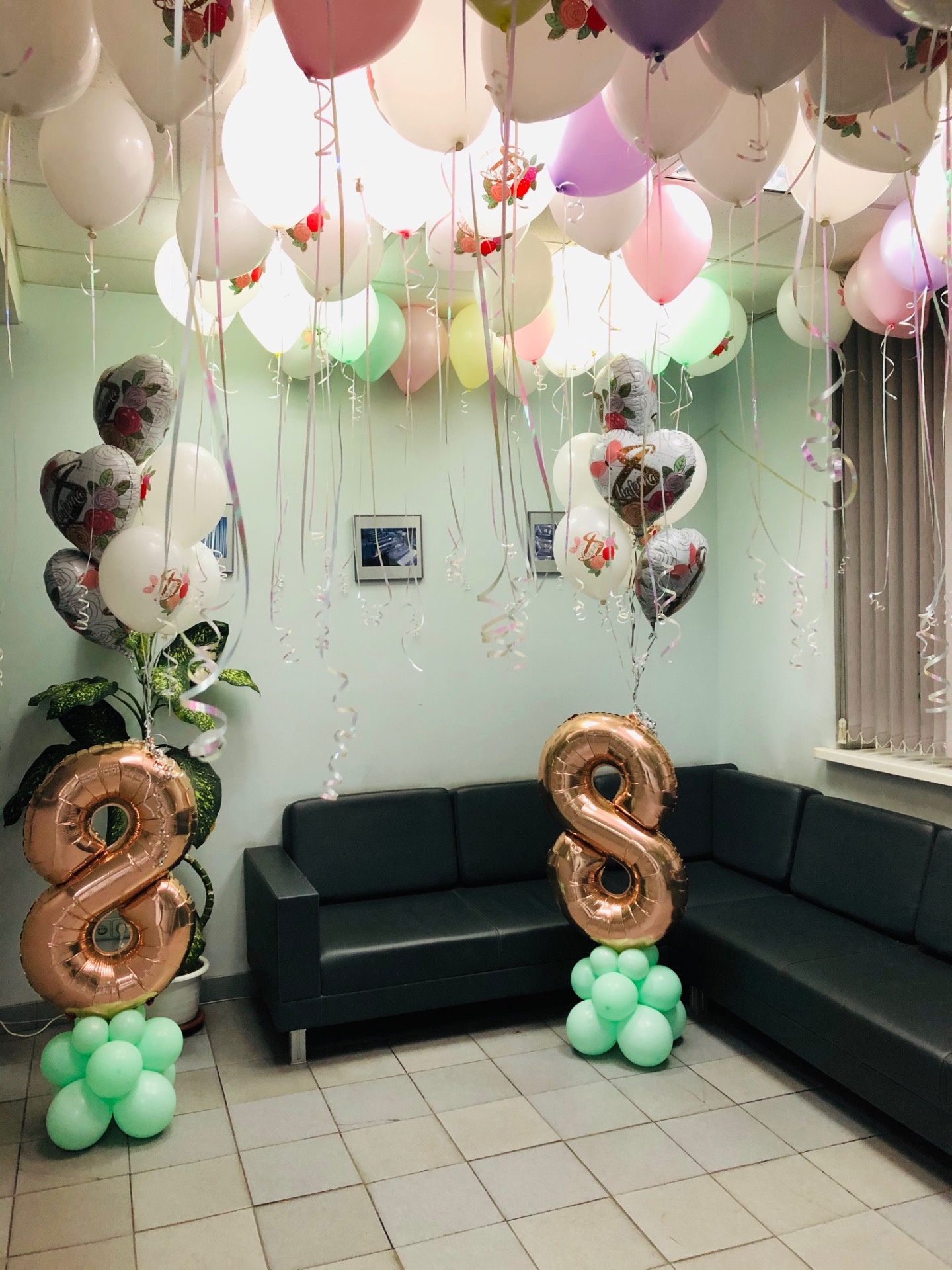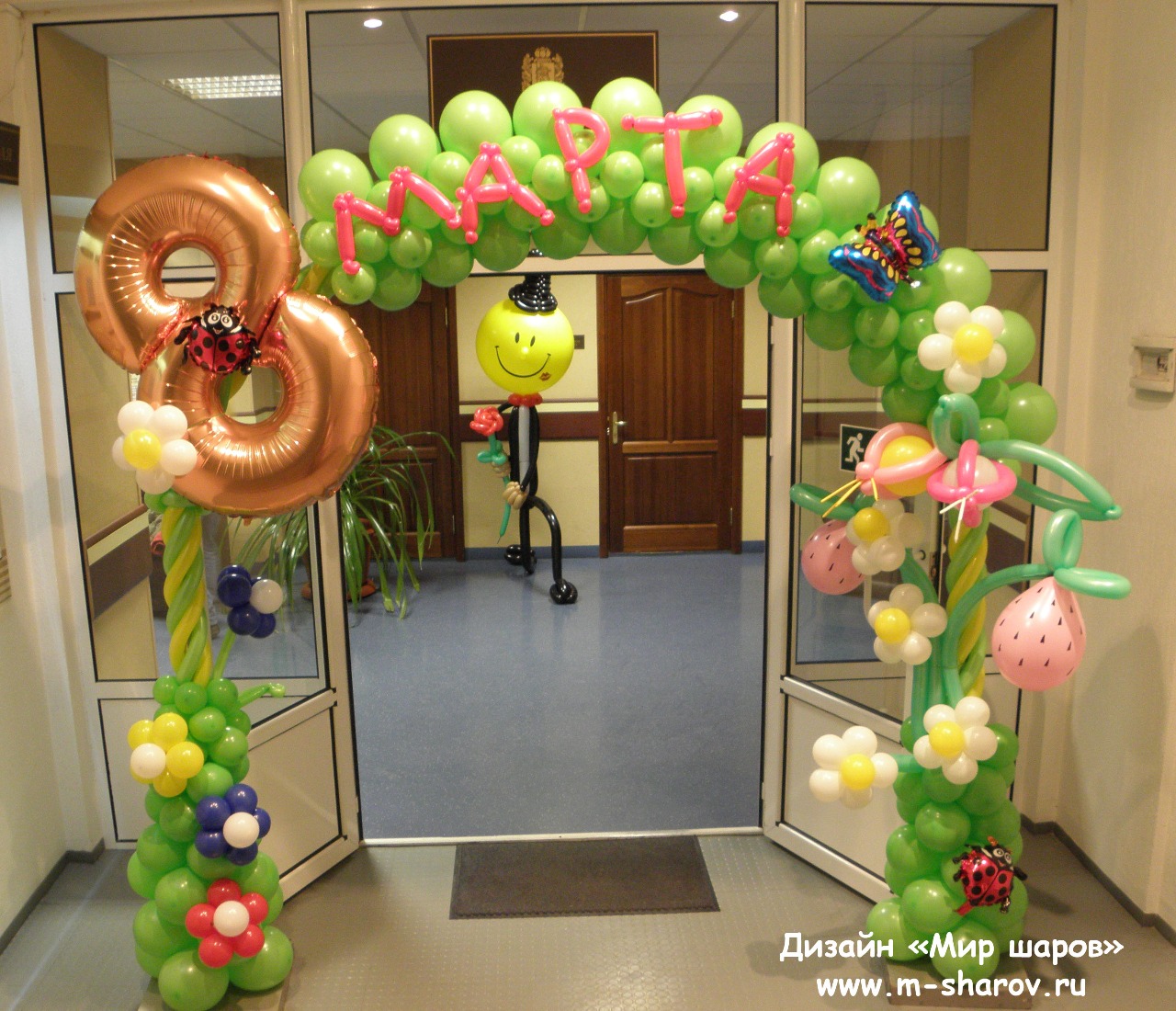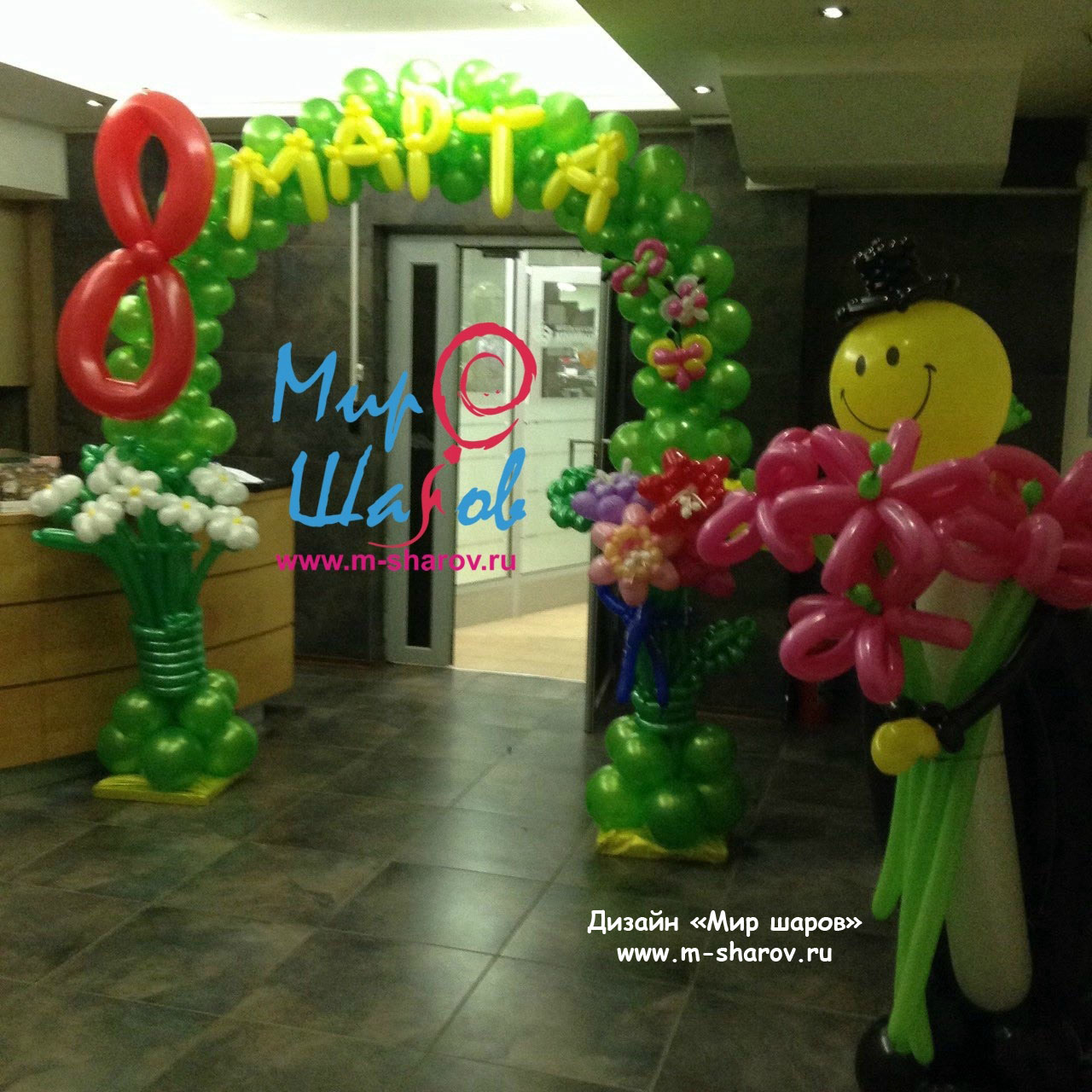 Подарите вашим женщинам оформление из воздушных шаров на 8 марта, красиво оформите место проведения корпоративного мероприятия и подарите букеты из разноцветных шариков.