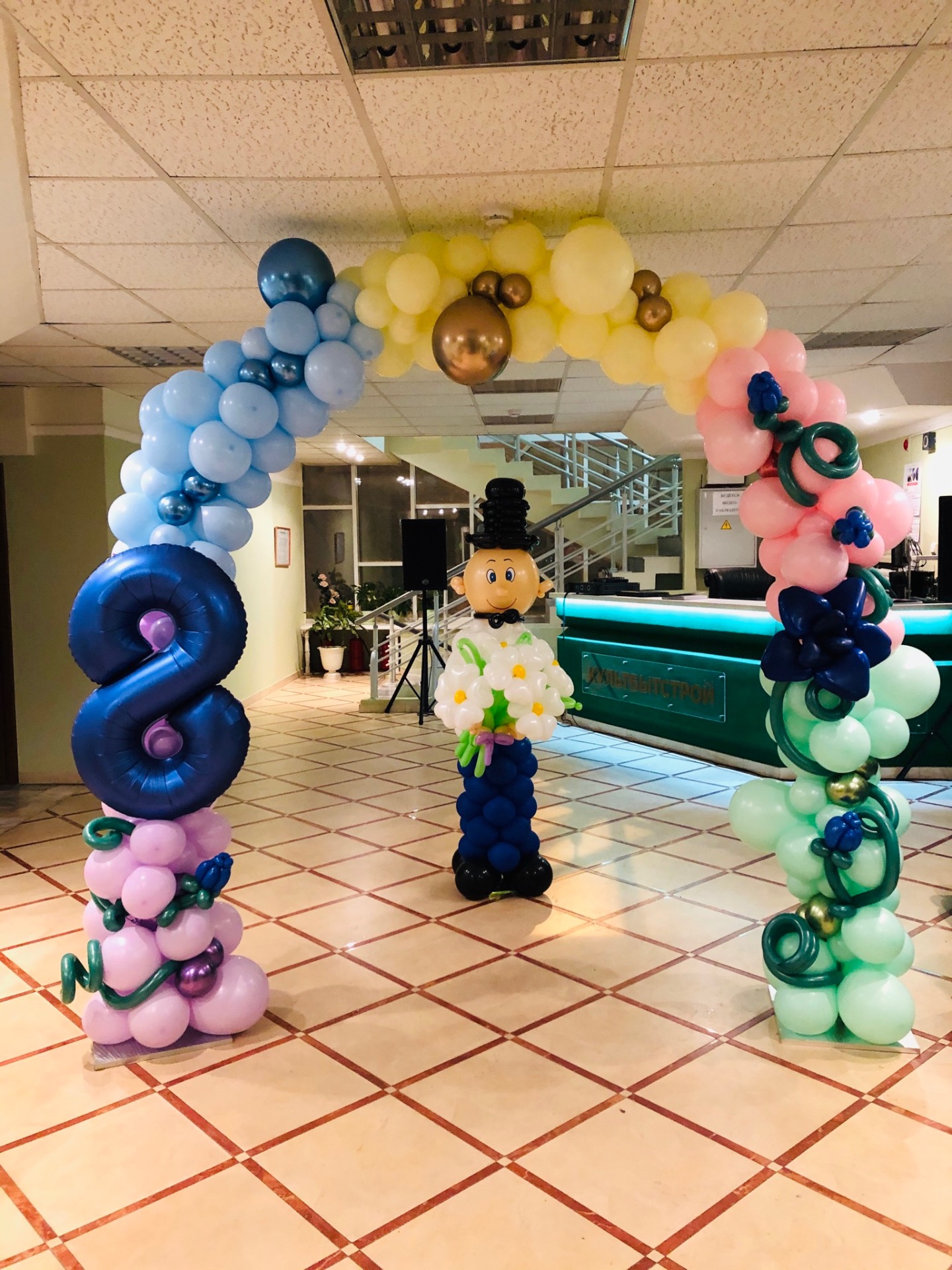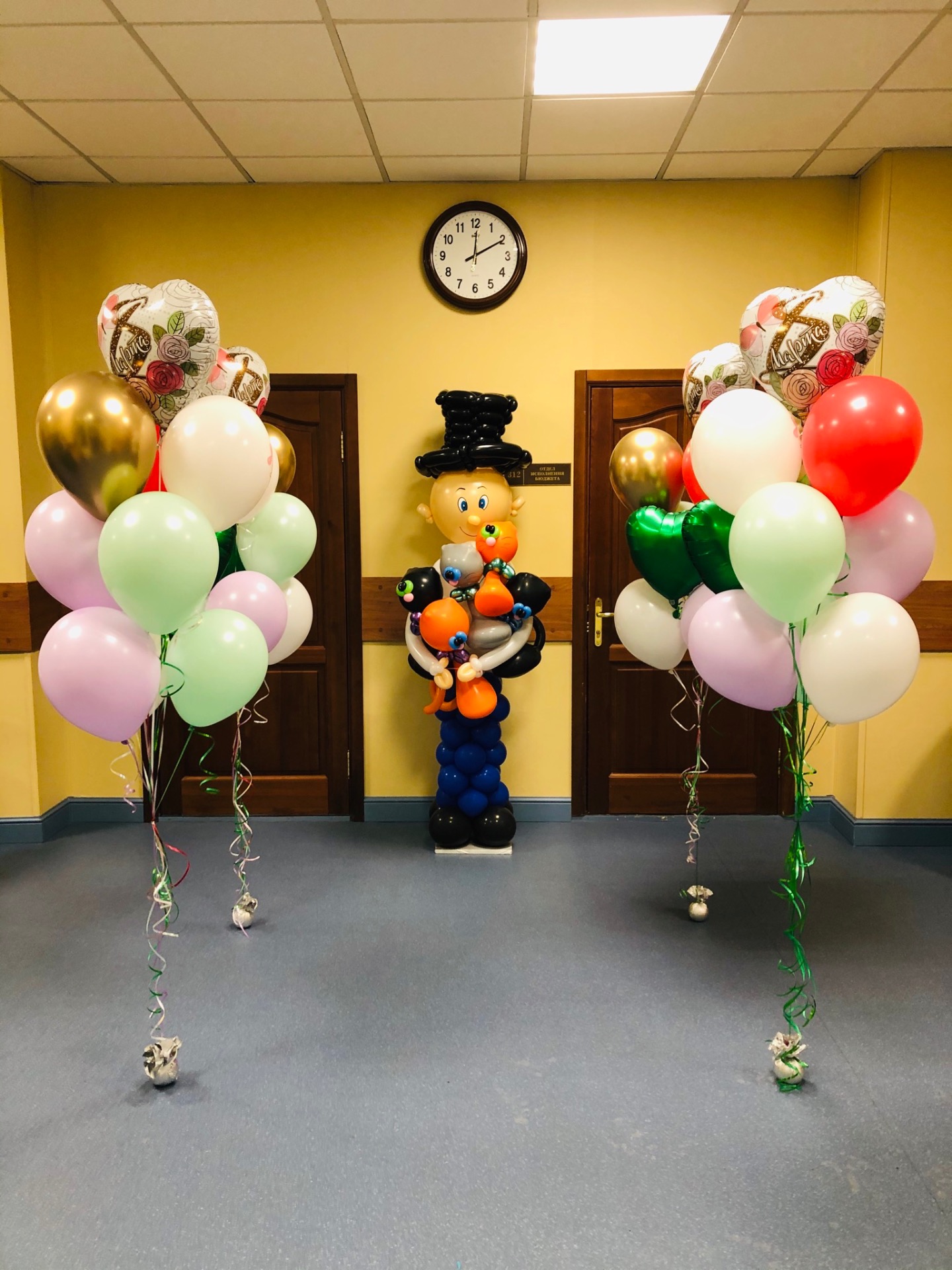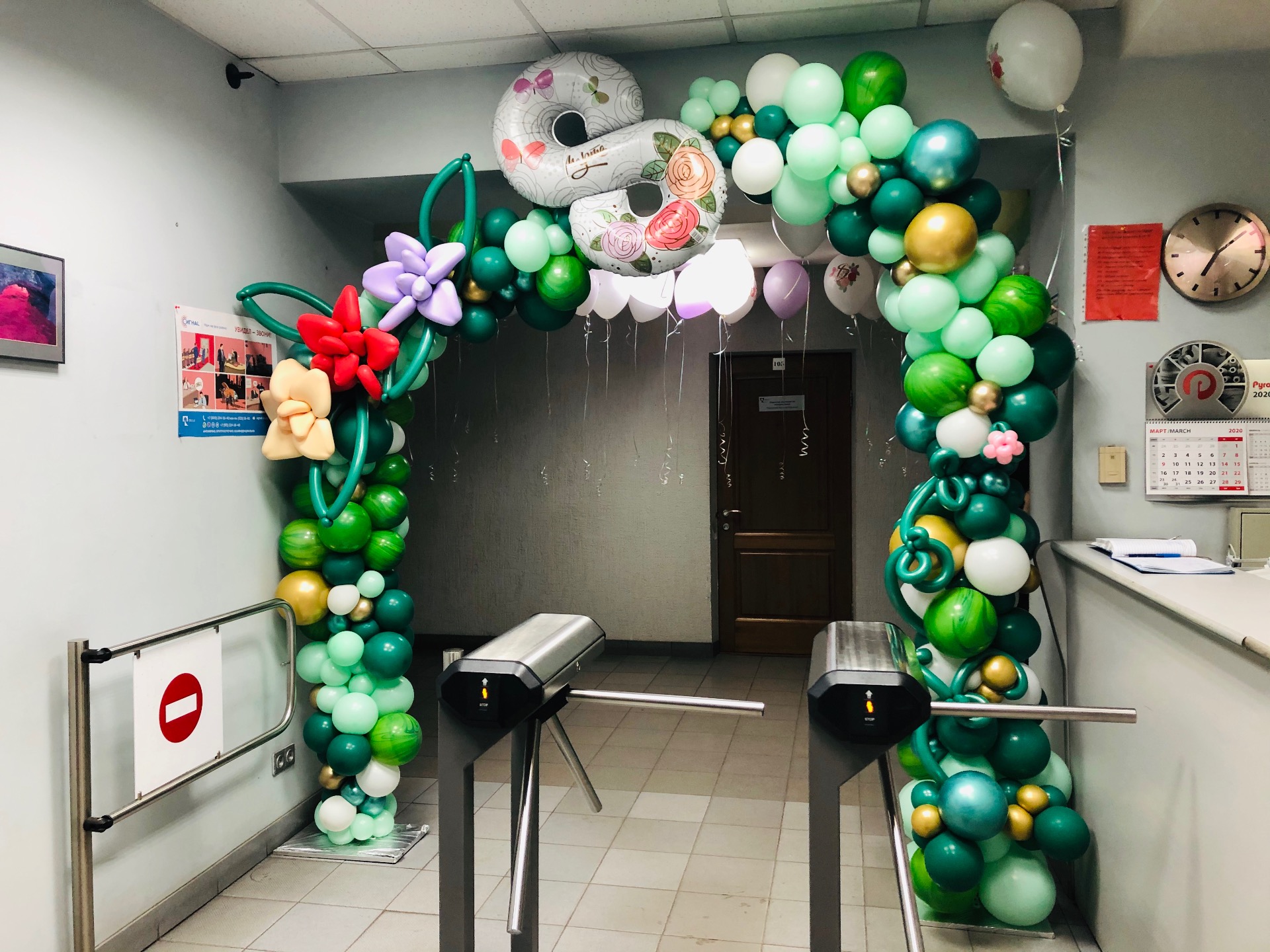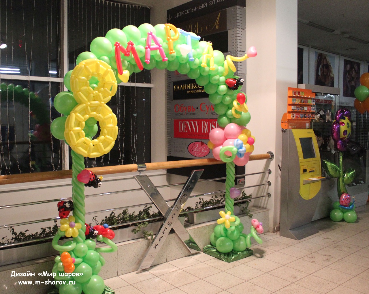 Подарите вашим женщинам оформление из воздушных шаров на 8 марта, красиво оформите место проведения корпоративного мероприятия и подарите букеты из разноцветных шариков.